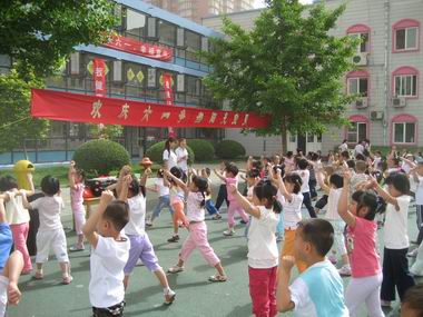 为进一步观察落实“阳光体育”活动计划,2008年5月28日在六一儿童节即将到来之际,我园中大班组开展丰富多彩的“庆六一争当阳光宝贝”体育运动会,鼓励幼儿爱运动,爱锻炼,爱健康,并结合幼儿园体能测试,鼓励幼儿努力挑战各项体能活动,争当单项和全能阳光宝贝。