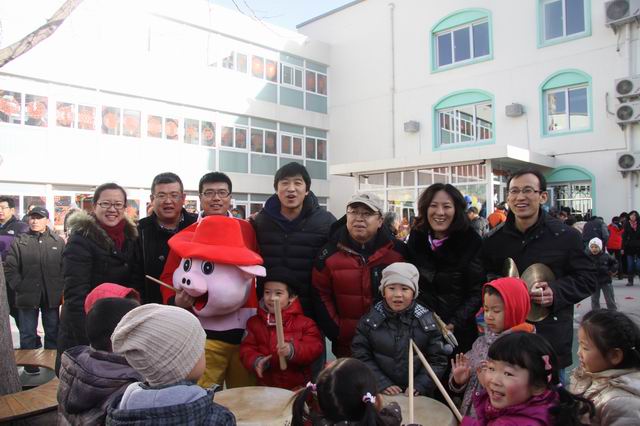 各班联欢会时,孙园长带领行政班子还到各班给孩子和家长们送去了新年的问候与祝福。