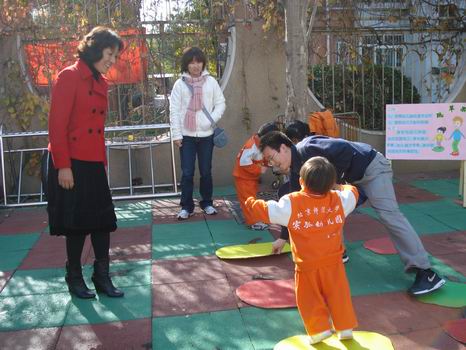 孙园长正给跳荷叶的“小青蛙”加油呢!