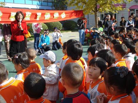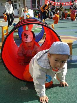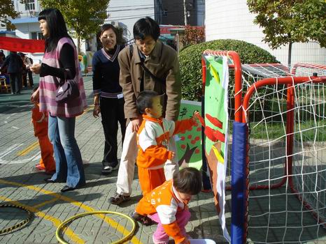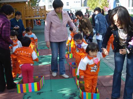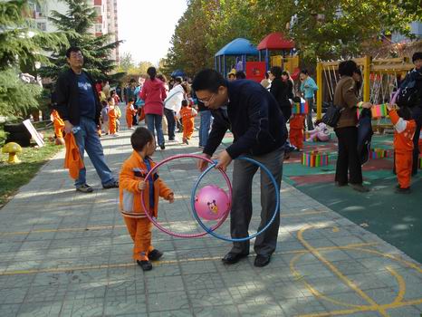 孙园长宣布:“婴、小班亲子运动会开始了!”