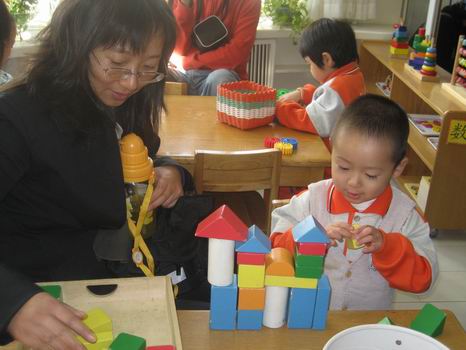 妈妈陪着我搭积木,我会垒高了
