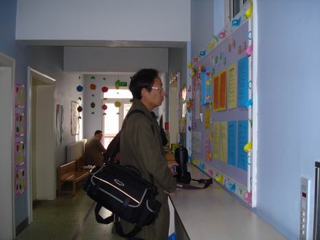 来观摩的爸爸正在认真阅读“家长园地”