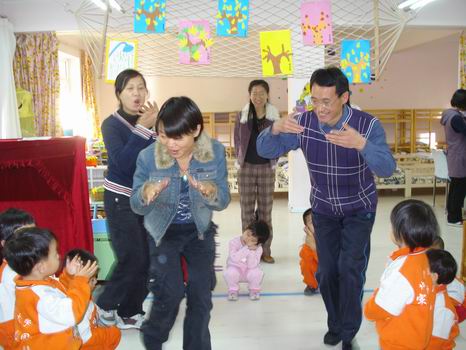 家长也参与到音乐游戏中,孩子们觉得真有趣