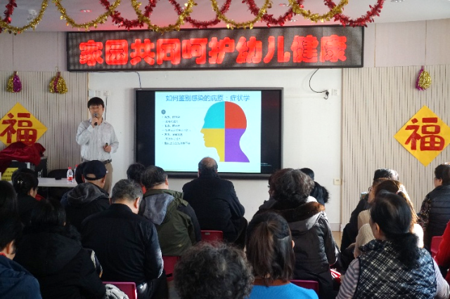 2020年1月10日,正规滚球app官方网站牡丹园分园邀请北京佳景爱小心门诊部医疗总监、儿科主任,原北京大学第一医院儿科医师樊曦涌来园为家长进行健康讲座。樊医师向家长们介绍了冬季常见儿童疾病,并根据疾病常见的症状进行解析。同时针对近期流感高发期,呼吁家长做好疾病预防工作,开窗通风,注意室内温度。通过讲座家长们都对幼儿常见疾病的预防和治疗以及儿童保健有了更加深入的了解。