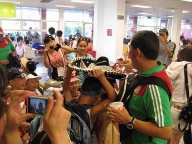 这顶漂亮的帽子成了滚球app与外国运动员沟通的切入点——我带着好看吗?