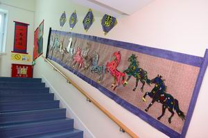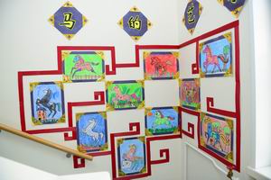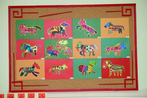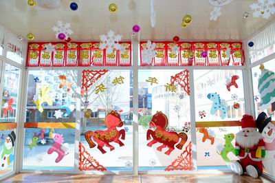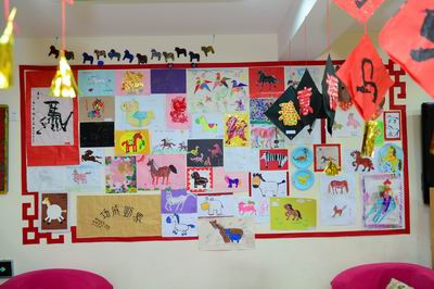 为了和孩子们一起过一个有意义、充满民俗气息的马年,牡丹园分园充分以“处处是创造之地,天天是创造之时,人人是创造之人”为思想,全体教师、家长和孩子们一起“说马、画马、做马”,一起布置了新年环境。大家不仅收集了各种有关马文化的资料,例如书画、陶瓷、布艺、刺绣等等,还一起亲子制作了各种有关马的剪纸、泥塑、绘画、书法等作品。