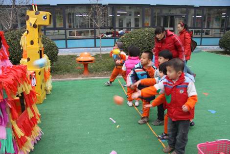 孩子们进行打靶的游戏,看看谁能站得远,打得准!