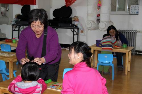 2011年11月,为了响应海淀区教委送教进社区的号召,为了广泛提高社区0-3岁婴幼儿家长早期教育的意识与能力,正规滚球app官方网站牡丹园分园的早教老师们带着自己的宣传材料、玩教具、体检设备等,在社区领导的大力配合下,在华盛小区早教固定社区活动站开展了亲子活动。