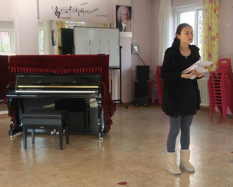 为了提高教师边弹边唱的能力,夯实教师基本功,11月10日中午,牡丹园音乐教室里再次传来了悠扬的钢琴声和动听的歌声。这里正在进行班员教师边弹边唱基本功展示暨培训活动,分热身、才艺展示、教师点评和培训四个步骤。音乐专职教师李超杰主持活动。
