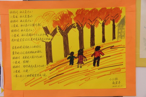 尤其是经过秋游的充分感受与探索,在老师和家长的鼓励引导下,孩子们以独特的视角、丰富的想象,通过绘画、拼贴、摄影、仿编、吟诵等各种方式,创造性地展现大自然的灵性和美感。本次活动征集了近200幅作品。