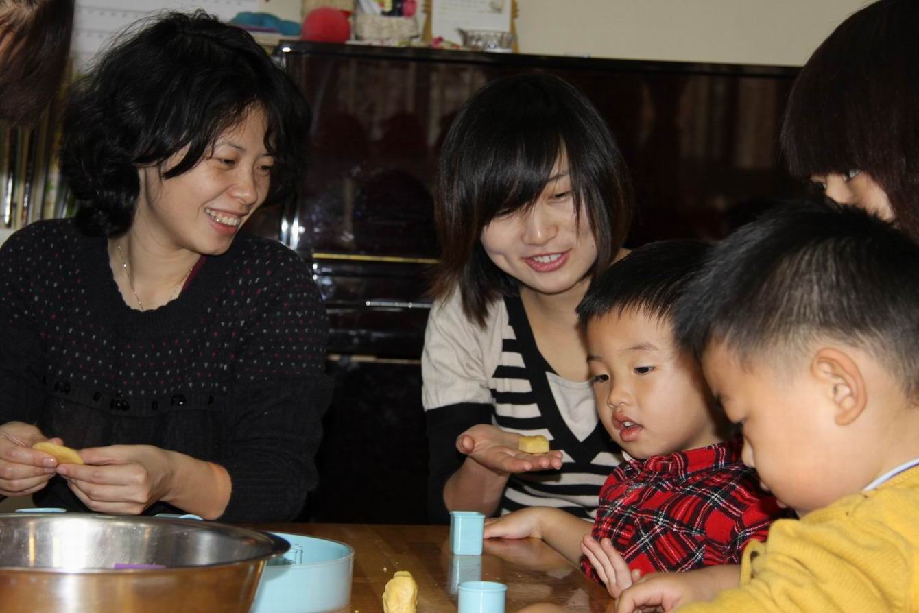 妈妈们和孩子一起做饼干