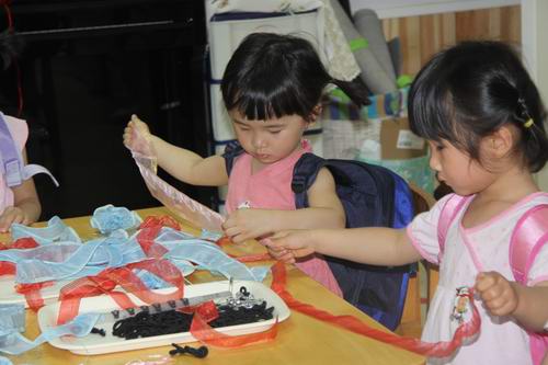 穿手链,各种彩色珠子让孩子们爱不释手