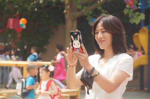 孙园长陶醉在孩子们的幸福里,用手机记录孩子们的快乐瞬间