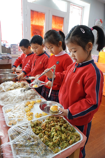 新年少不了美食,2016年12月28日,牡丹分园以自助餐的形式为孩子们送上了新年大餐,翡翠虾仁、红烧翅中、土豆牛肉、小鸡酥……孩子们争先恐后地取餐、添餐,一边吃一边和同伴谈论着,“马上要过新年了,真好吃!”。