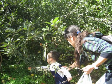 咦?这个苹果矮,我要自己摘!
