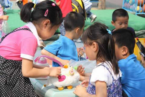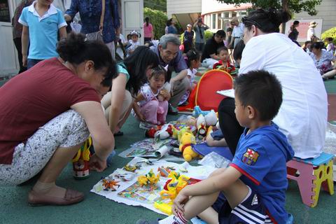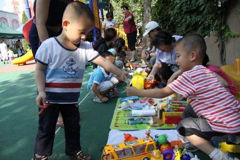 在六一系列庆祝活动之后,牡丹园的全体孩子们进行了“儿童图书、玩具物物交换”和“儿童用品跳蚤市场”两个体验社会生活的活动。开展互换活动和儿童跳蚤市场旨在于让孩子们通过切身实践和体验,培养孩子们自主自立的意识、勤俭节约的品质和良好的社会交往能力,同时也让他们从劳动中体会价值再创造的乐趣和分享的快乐。
