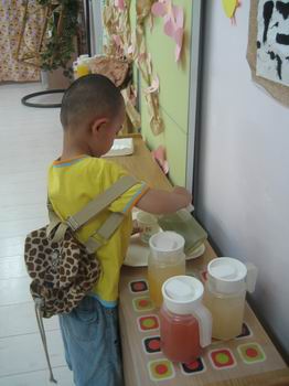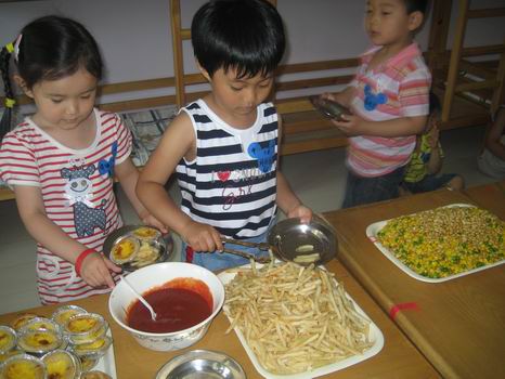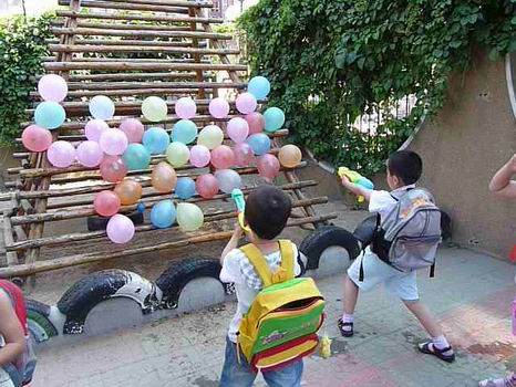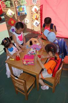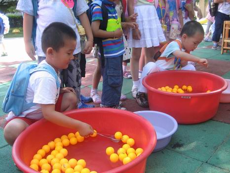 游艺会以开放的方式,在教学楼一层的五个教室和院落当中,设置了15个游艺项目、15个手工、益智活动,并在日托和全托大厅设置两个休息“水吧”。小、中、大班幼儿将独立、自由、自主地选择游艺项目,或与小朋友结伴而行。婴班幼儿将在本班老师的带领下分成小组参加活动。