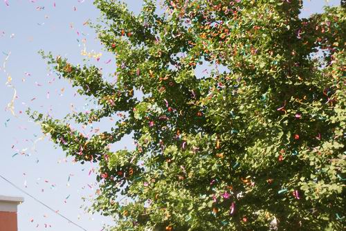 哇,原来是射出漫天的彩带渲染节日气氛呢