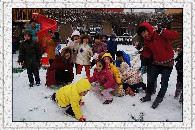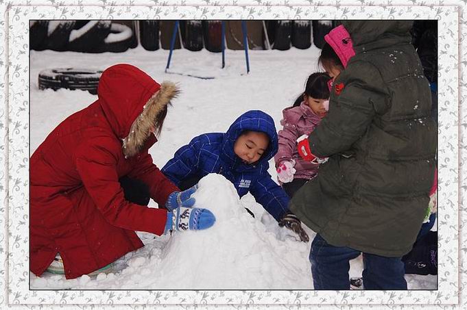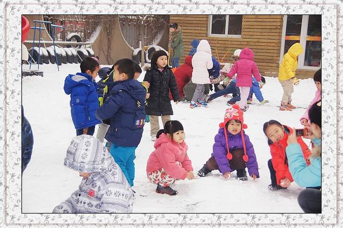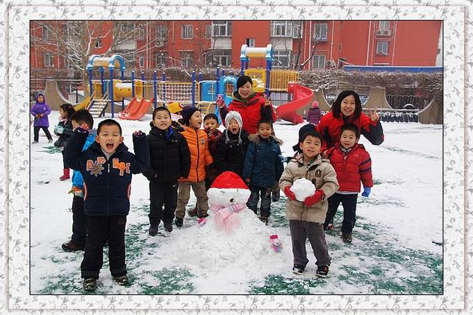 随着孩子陆续来园,操场喧闹了,带着兴奋的尖叫和大笑,玩雪去喽!多冷都不怕,老师带着孩子们一起扫雪、团雪球、推雪人、打雪仗,你追我赶,享受着新雪的柔软与清新,心境美丽如画,孩子们笑靥如花。