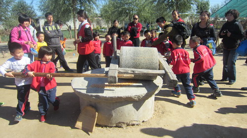 中班年级组赴顺义区北京阳光少年教育实践基地,围绕“学习农耕文化,体验劳动快乐,激发户外运动,增强幼儿身体素质”的目标,开展了以“农耕”为主题的秋游活动。过程中,孩子们体验了“独轮车运粮”、“扁担过桥”、“玉米拼图接力”“推石磨”等秋收劳动,举行了精彩激烈的亲子拔河比赛,用采摘后的棉花黏贴小绵羊,进行手工创意,还组织了“凌云飞渡”、“飞夺泸定桥”、“铁索迷宫”“合作颠球”等体能项目以及“拔萝卜”“搓玉米”“喂山羊”等体验活动,活动异彩纷呈。