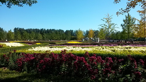 十月的北京,秋高气爽、秋色宜人,大自然呈现出丰富多彩的颜色,令人心旷神怡。农田里,果园内一片硕果累累,丰收的景象,花海中,不同颜色、不同品种的菊花,有的昂首怒放,有的亭亭玉立,还有的羞羞答答,真是千姿百态啊!