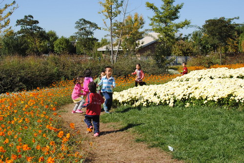 小班和全托年级组组织前往顺义鲜花港秋游。在公园导游和老师的带领下,家长带着孩子们参观了美丽的菊花展、制作了干花书签、万花筒,观看百花仙子3D电影、在色彩斑斓的鲜花迷宫里玩游戏,最后家长和小朋友们在大草地,跟随着老师一同唱歌、跳舞、做间操,品尝美食、分享美食,蓝天、白云、草地,花海,映衬着孩子们的欢声笑语。