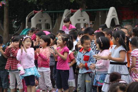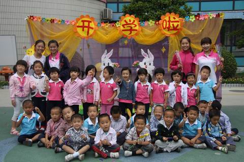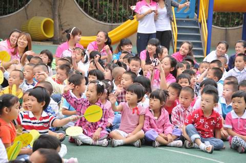 所有的小朋友、教职员工欢聚一堂,欢迎新入园的小宝宝们同时庆祝小朋友升班。