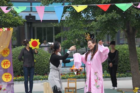 在庆祝活动中,老师们演出了传统节目《嫦娥奔月》,为孩子们形象地讲述了中秋节的来历……孙园长即兴讲述了精彩的神话故事《玉兔的传说》。老师和孩子们还演出了小合唱《小白船》、诗歌朗诵《中秋节》、《静夜思》、《望月怀远》等。在轻松、和谐的氛围中,孩子们体验了节日的快乐,了解了中秋节的文化。