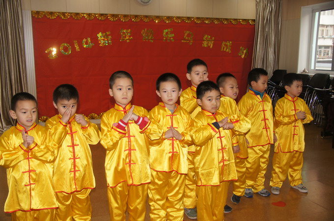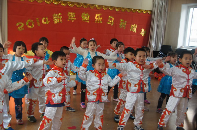 马年到来,12月27日,大班全体小朋友们欢聚在一起,用动听的歌声,热情的歌舞,迎接新年的到来。在音乐教室里,分别表演了《今天是个好日子》、《铃儿响叮当》、《Go Go Girl》、《中华好小子》、《喜乐年华》、《春晓》、《霍元甲》等多个精彩节目,在喜气洋洋的气氛中迎接马年的到来。