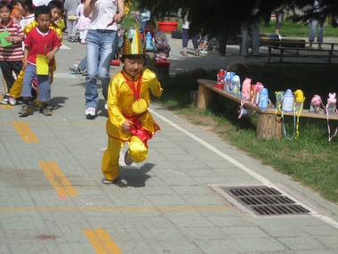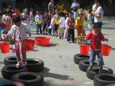 为进一步观察落实“阳光体育”活动计划,2008年5月29日在六一儿童节即将到来之际,我园全托班组开展丰富多彩的“庆六一争当阳光宝贝”体育运动会,鼓励幼儿爱运动,爱锻炼,爱健康,并结合幼儿园体能测试的原有成绩,鼓励幼儿努力挑战,争当单项和全能阳光宝贝。