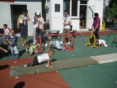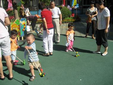 孩子们玩得不亦乐乎,爸爸妈妈们有了难得的清闲