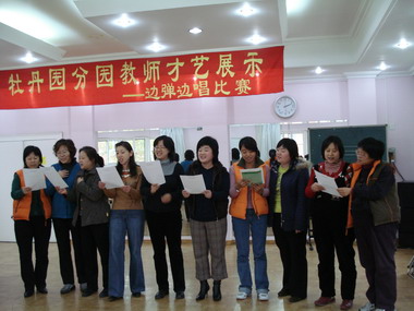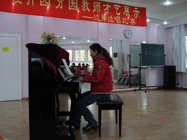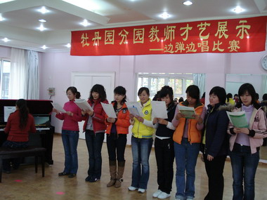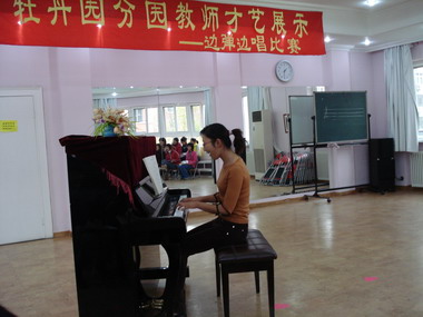 2007年11月22日,滚球app牡丹园幼儿园青年教师才艺展示系列活动之“边弹边唱展示”活动,在优美的琴声与动听的歌声中展开了。流畅完整的弹奏,自然动听的演唱,亲切和谐的师生互动,展现青年教师进行歌唱活动的良好素养。