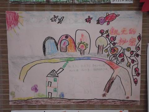 “秋天的秘密——艺术作品展”共征集了中大班60多幅亲子艺术作品。孩子们以独特的视角、丰富的想象,利用各种收集的自然物,通过绘画和挑选、仿编、创编儿歌、散文、故事等各种文学作品,创造性地展现大自然的人物花鸟的灵性和美感,展现了孩子们感受秋天、发现秋天秘密的喜悦之情。