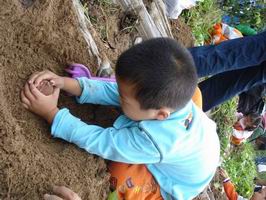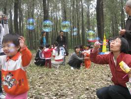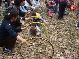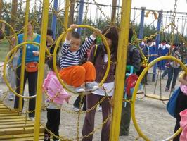 中大班年级组的目的地是大兴科技园。在这里,孩子们过足了感受科技和体能锻炼的瘾。精彩的火箭发射表演让孩子们兴奋不已,而各种有趣、刺激又具有挑战性的拓展训练更是激起孩子们极大的参与热情和积极性。挖红薯的活动既让城市里长大的孩子们认识了红薯的生长特点,同时又在收获的喜悦中满载而归。