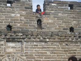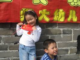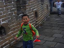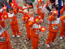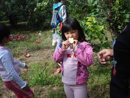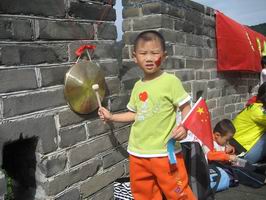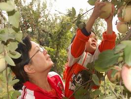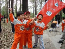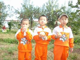全托班年级组则将锻炼幼儿体能与了解中华文明、激发爱国热情结合起来,鼓励幼儿以挑战自我的形式爬上慕田峪长城。为了鼓励孩子们的攀登积极性,老师们将起点到终点的路上分成了五站。五站的内容分别是:领取地图、领取国旗图案的脸贴、领取国旗、领取国旗图案的胸针、将写有自己名字的地图作为城砖贴在画好的长城上并击响象征胜利的铜锣。当长城上不断飘荡出铜锣的响声时,孩子们挑战自我的喜悦也漫延在长城内外。与其他年级组相同,最后孩子们也来到果园,尽情地采摘大苹果。