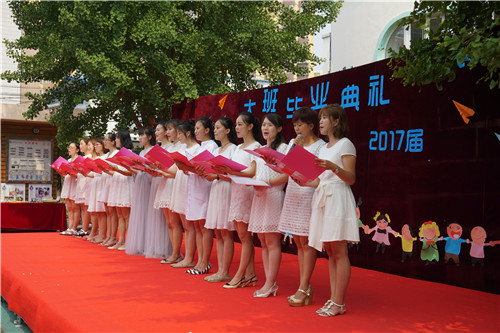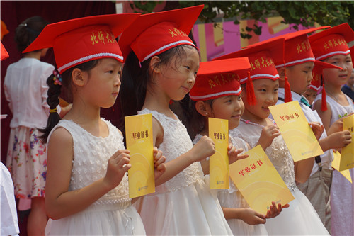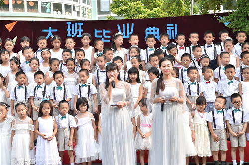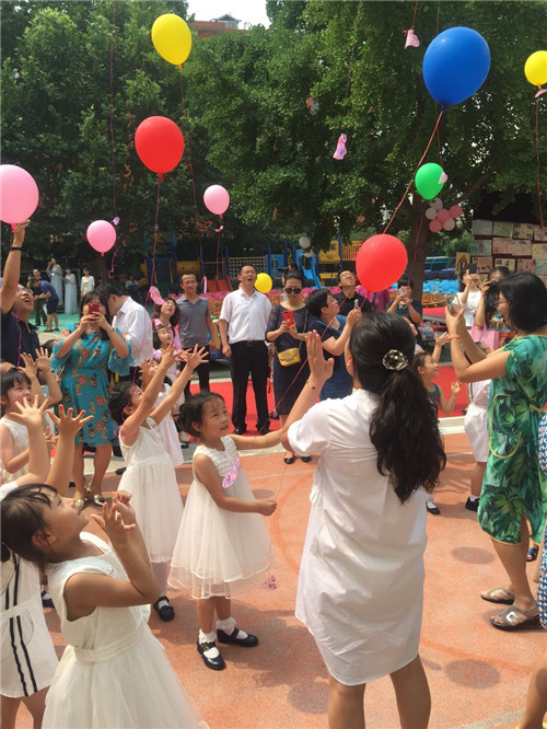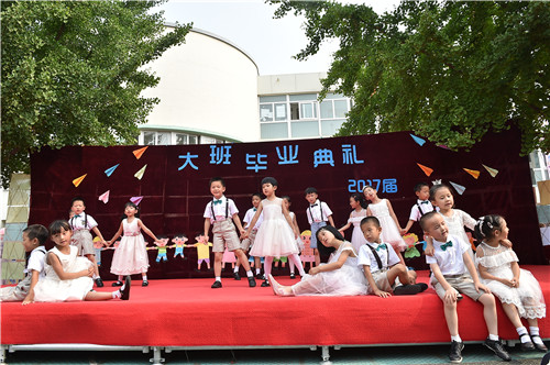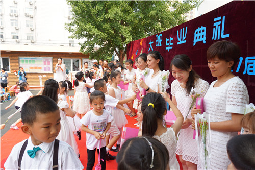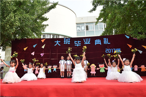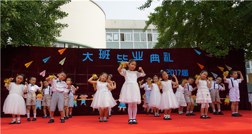 2017年6月30日,牡丹分园举行大班毕业典礼,全体毕业生及其家长盛装出席。典礼上,家长代表致辞,分享孩子成长的瞬间;园长讲话,感谢孩子带给幼儿园的欢乐;幼儿园弟弟妹妹发言,祝愿哥哥姐姐取得好成绩……时时处处流露出家长与幼儿园、孩子与老师之间的情深意切。接着,毕业生们用歌声唱出成长的骄傲,用舞蹈展示出童年的美好,台下的老师和家长们心起涟漪,感动、感慨、欣喜、欣慰……。最后,鲜花送给老师、蜡烛传递祝福、气球放飞心愿,愿孩子们从这里起航,飞向更广阔的天地……