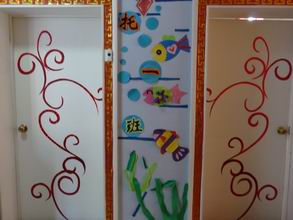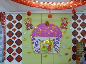 每年新年环境的布置都是老师们颇费心思的一件事。今年,为了拓宽老师的思路,使新年环境更加丰富喜庆,牡丹园特意邀请幼儿美术教育经验丰富的专家为老师们做报告,通过ppt和大量的图画、图片向老师们介绍了中国传统艺术的表现形式以及如何引导幼儿进行创作等问题。也正因如此,今年无论是班级的环境还是公共环境,都布置得红红火火、异彩纷呈!
