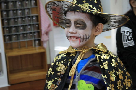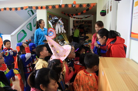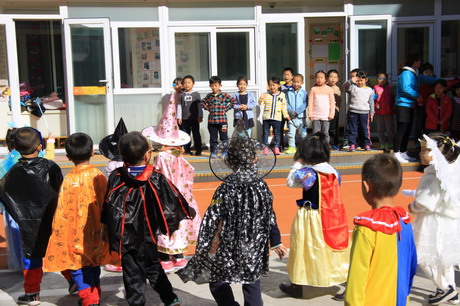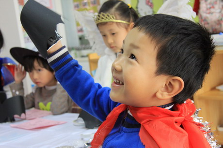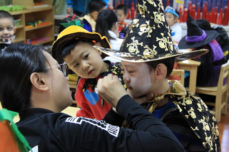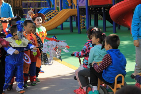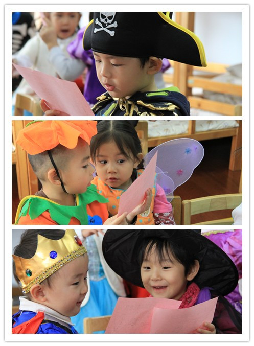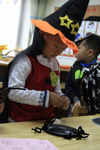 10月30日上午,牡丹分园中班组召开了一场别开生面的神秘万圣节活动。孩子们装扮成孙悟空、爱莎公主、蜘蛛侠等人物形象,自主前往各个教室参加万圣节的制作活动——恐怖大蜘蛛、神秘斗篷、吸血蝙蝠、幽灵娃娃等,让孩子们过足了“鬼”瘾!之后的“不给糖就捣乱”、“万圣节大游行”,更让孩子们欢呼雀跃,男孩子扮霸道、女孩子扮美丽,最终讨到糖果,更使孩子们享受到万圣节的甜蜜!