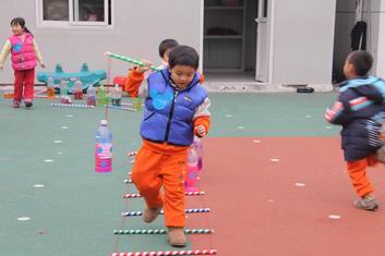 之后是孩子们最喜欢的自主体育活动,哥哥姐姐和弟弟妹妹们手拉手奔向自己喜欢的体能项目。十几种体能项目让孩子们“疯”了个够。