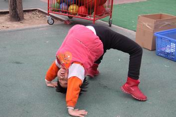 在孙老师的鼓励下,孩子们还展示了翻跟斗、下腰等本领