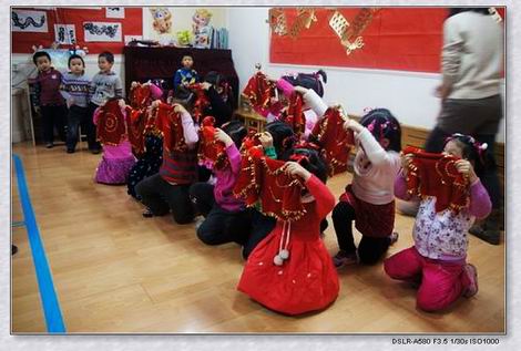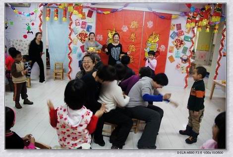 各班家园联欢以歌舞表演、互动游戏为主。各种活动可谓是精彩纷呈、好戏连台。大合唱、古诗串烧、歌表演、童话剧、集体舞轮番登场。孩子们精彩才艺表演,令家长欣喜和赞赏。除了观看表演,家长和孩子一起玩了踩气球、贴福字、揪尾巴、击鼓传花等形式多样的亲子游戏,给孩子和家长带来了无限快乐。家长们纷纷拿起摄像机、照相机,尽情的为孩子们记录下这欢乐的场面,忙得不亦乐乎。每个班都充满了其乐融融的喜庆气氛。