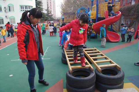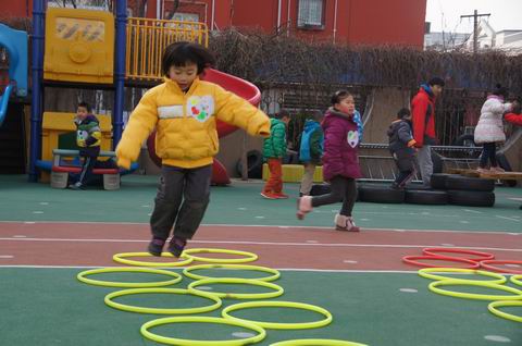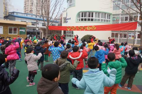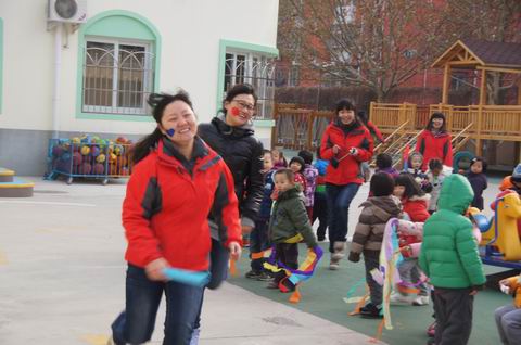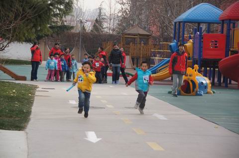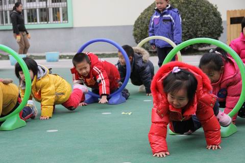 经过一段时间的冬季锻炼之后,12月中旬,牡丹园分园全托班和日托班的年级组先后举行了形式多样的冬季运动会。随着孩子们嘹亮的口号声,伴随着《运动员进行曲》的豪迈音乐,运动会拉开帷幕。在集体热身、韵律操之后,孩子们生龙活虎地参加了各项体能游艺活动。这些体能锻炼项目兼顾了情景性、趣味性、科学性、竞赛性和一定的运动强度,活动项多达数十种:翻越障碍赛、彩虹桥、云梯时光隧道、穿越封锁线、负重运球比赛、双脚连续跳、跨跳、空中投球、喂动物、打靶等等。此次冬季运动会既锻炼了幼儿体能又培养了孩子热爱体育活动的兴趣。