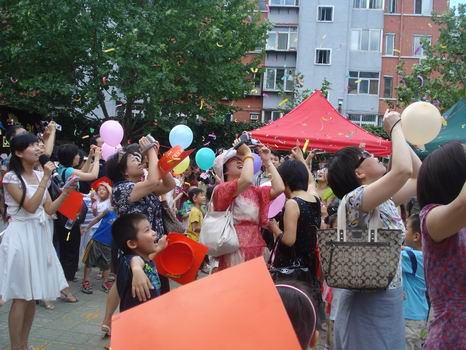 五彩的气球飘向湛蓝的天空,是否也会将孩子们的心愿告诉白云?
