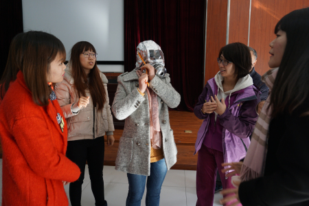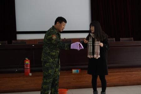 在活动现场具有丰富火灾救援经验的消防中队长张教官把在真实火灾救援中发现的问题跟大家分享并现场教会大家遇到这些问题如何处理,而且请现场的老师们一一演示火灾逃生的方法。