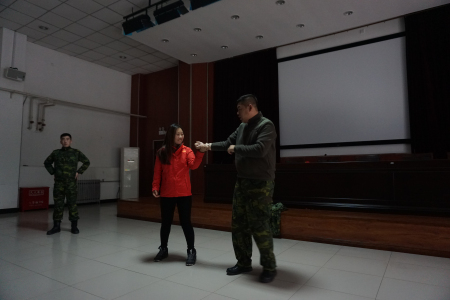 老师们还学习了国际通用手语,便于在危险状况下向外界传递信息等自救方法;现场还学习了遇到歹徒如何脱逃技巧,老师们积极认真学习的热情感染着教官们,教官们就更想多教几招,希望老师们能多学一些防身的方法。