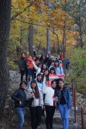 逃生体验基地正是一处幽静的景点,灿烂的阳光遮挡不住老师们靓丽的身影,漫山红叶留住老师们最美笑靥。