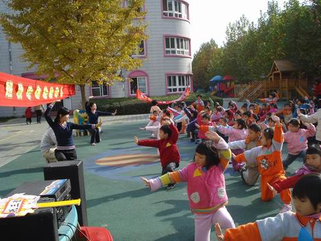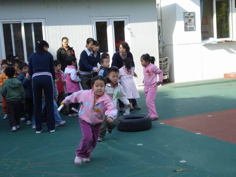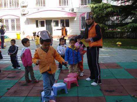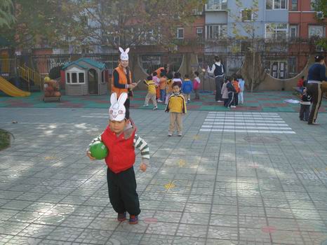 老师们设计了适合不同年龄孩子运动项目,小班的孩子有游戏性的项目,扮成小兔跳一跳,扮成小熊走平衡;大班的项目则有一些需要团结协作完成的内容,接力比赛,跳大绳等,孩子们个个积极参与,展现了良好的运动状态。