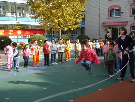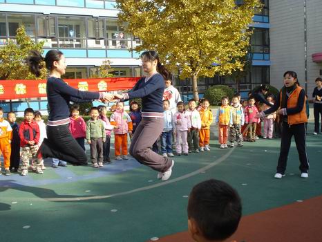 老师们向孩子展示了跳大绳的高超技能