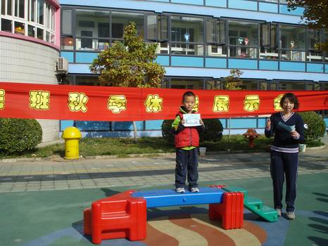给体能小冠军发奖了,每个小朋友都是“体能小冠军”!