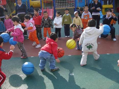 小班的小朋友已经都会连续拍球了